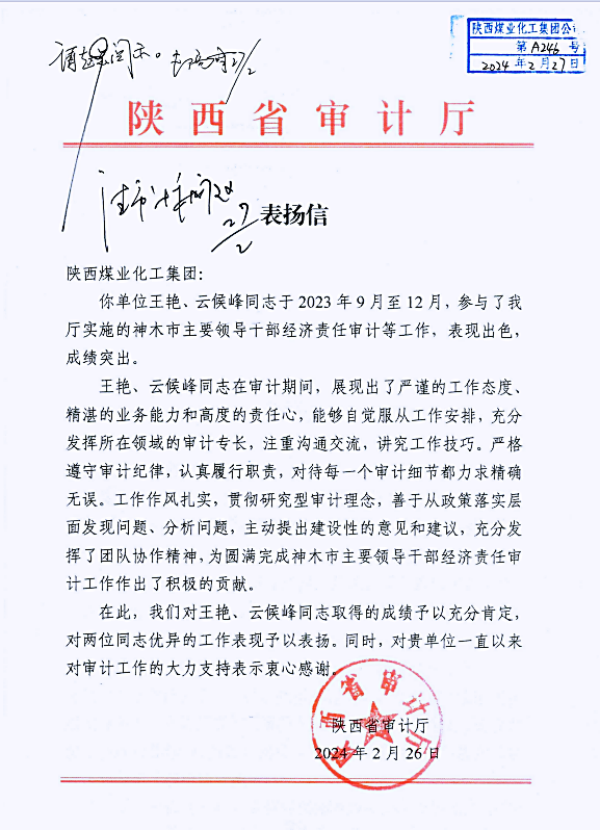 电化:受到省审计厅书信表扬