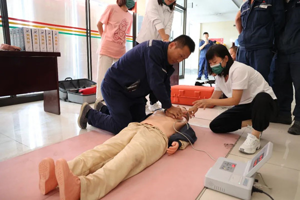 活动现场有安全知识有奖问答、除颤仪、心肺复苏现场教学、漫画中识别身边的违章和正压式空气呼吸器穿戴现场教学等四个宣传项目。活动吸引了不少员工前来参观。工作人员热情细致地向现场群众宣传介绍“安全生产月”和“安全生产宣传咨询日”活动的目的、意义,并细心解答员工咨询的安全生产相关问题。与此同时,活动现场还设置了咨询台,通过摆放展板、发放宣传资料、宣传手册等形式,开展安全生产法律法规、安全科普常识、应急处置、自救互救方法及安全生产知识方面的宣传。