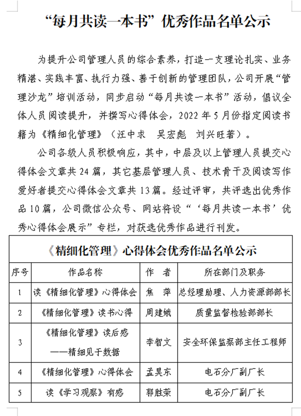 每月共读一本书优秀作品名单公示