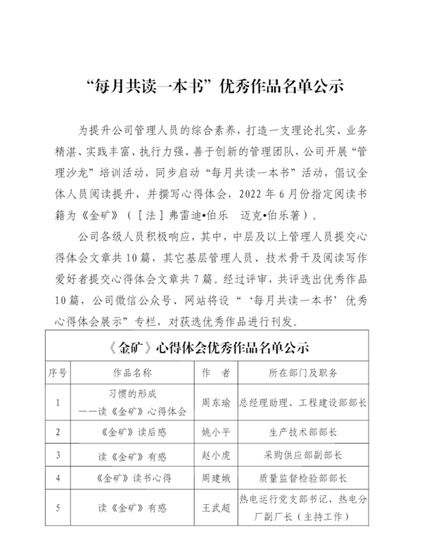每月共读一本书优秀作品名单公示