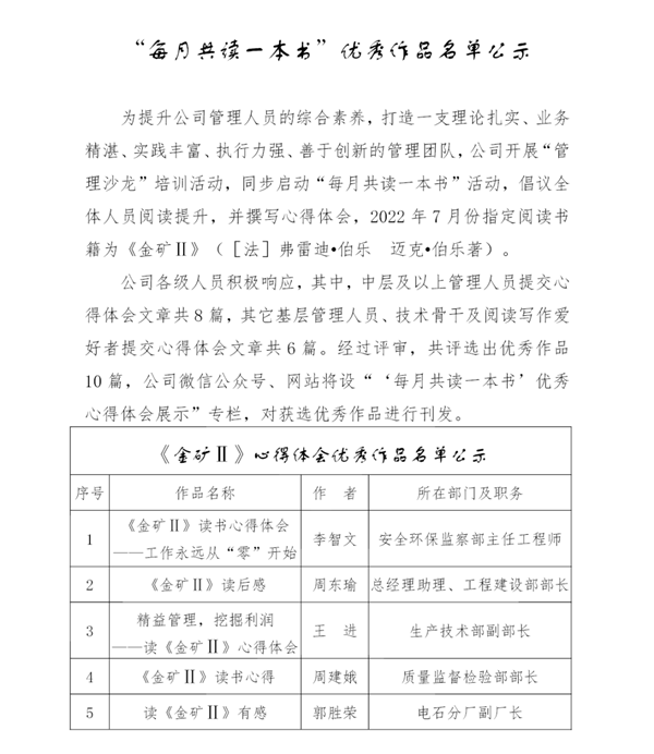 《金矿Ⅱ》优秀心得体会作品名单公示